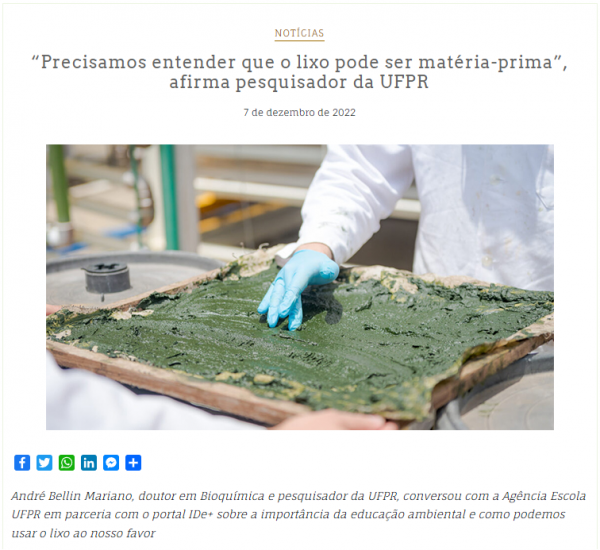 [𝗗𝗘𝗦𝗧𝗔𝗤𝗨𝗘] Confira o artigo da Agência Escola abordando vários aspectos sobre sustentabilidade na utilização de Resíduos Sólidos Urbanos (RSU) desenvolvidos no Núcleo de Pesquisa e Desenvolvimento de Energia Autosusstentável pelo Professor André Mariano do Departamento de Engenharia Elétrica (DELT - UFPR).