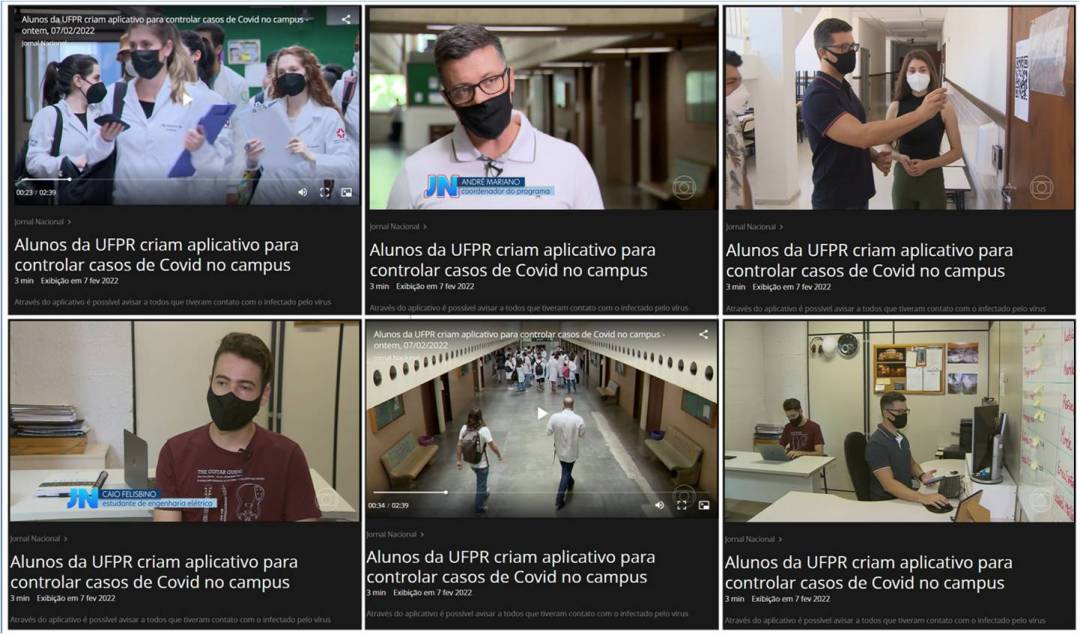 Além disso, a própria universidade divulgou a ação do projeto através de um vídeo https://youtu.be/tr0Oi0gZyRU produzido pela UFPR TV e uma publicação no portal pela SUCOM: https://www.ufpr.br/portalufpr/noticias/ufpr-cria-aplicativo-para-rastrear-casos-suspeitos-e-positivos-de-coronavirus-na-volta-as-aulas/.